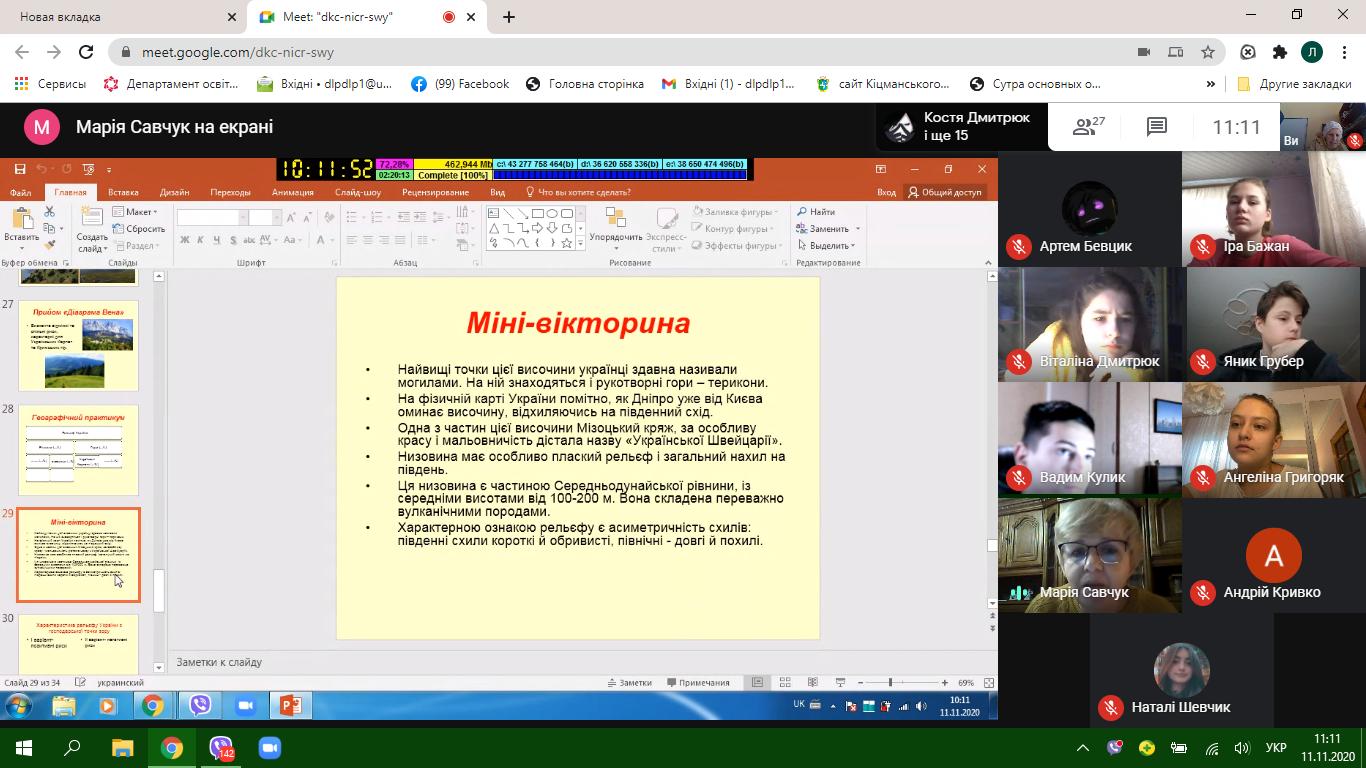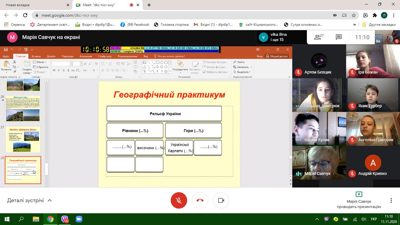 Сьогодні 11.11.2020 на другому уроці Савчук Марією Миколаївною було проведено відкритий урок з географії.