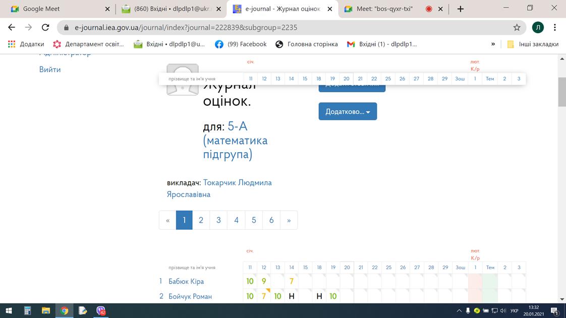 20.01.2021 проведено онлайн-нараду для вчителів математики