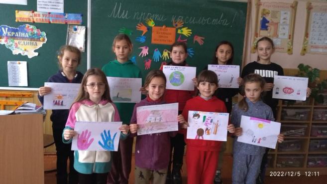 02.12.2022ð. ó 4-Á êëàñ³ ïðîâåäåíî âèõîâíó ãîäèíó íà òåìó: "̳é óëþáëåíèé ñâ³ò áåç íàñèëüñòâà". Íà ñâî¿õ ìàëþíêàõ ä³òè ïîêàçàëè ñâ³é ñâ³ò ÁÅÇ ÍÀÑÈËÜÑÒÂÀ.
