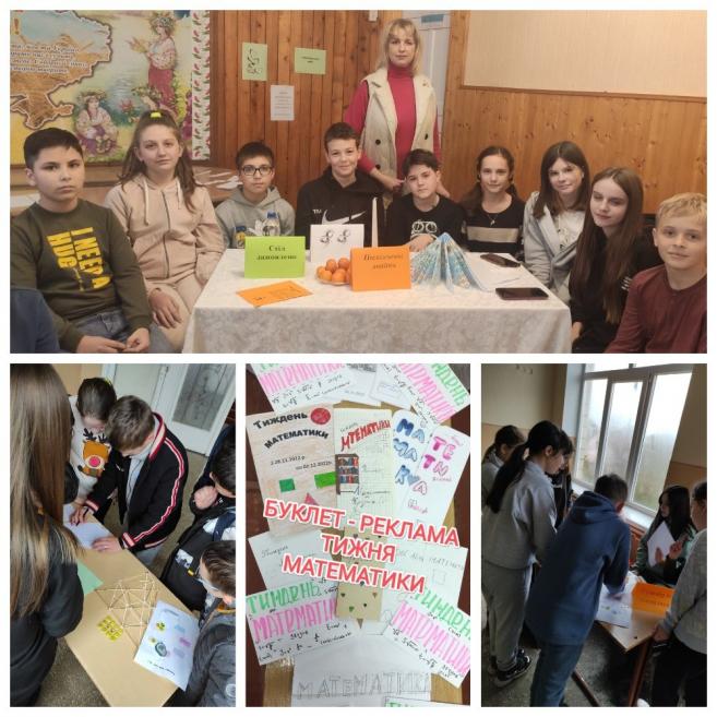 Під час проведення тижня математики учні мали змогу відправитися у веселу і захопливу мандрівку країною Математики. Діти розгадували ребуси, головоломки, кросворди, розв'язували цікаві задачі, були учасниками вікторин, змагань, конкурсів, інтелектуальних ігор. Учні розробили рекламу до тижня математики та створили своїми руками виставку геометричних фігур. Завдяки злагодженій і професійній роботі вчителів Пентелюк Г.В., Токарчик Л.Я., Шаламай Т.В., Філіпчук В.В., Кривого І.М. кожен захід вирізнявся оригінальністю проведення, цікавим та актуальним змістом, інформаційною насиченістю, відповідав навчально-пізнавальним, розвиваючим та виховним цілям організації освітнього процесу в закладі.
