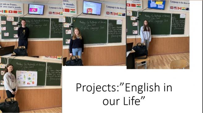 Протягом тижня учні закладу під егідою вчителів англійської мови виконували цікаві завдання, малювали плакати, брали участь у вікторинах та конкурсах, нестандартних уроках та проєктних роботах. Так, вчителька Богданюк Л.М. провела конкурс проектів для восьмикласників “Англійська мова в нашому житті”, а шестикласники побували на уроці-грі “Знавець англійської мови”, семикласники інтелектуально повправлялися під час граматичної вікторини та проєктної роботи за програмою STEAM. Вчителька Головата О.Є. провела нестандартне заняття “Хочу бути вчителем”, об’єднавши учнів 5-их та 9-их класів і використавши елементи STEAM-освіти. Вчителі Магун І.І. та Лакуста Т.В. створили справжнє свято для учнів закладу своїми позакласними заходами: лексичний турнір для першокласників “Cats against Dogs” (Магун І.І.), свято "Весна: парад весняних квітів" з учнями 3-Б (Лакуста Т.В.). Вчителька Маринюк Ю.Г. провела цикл нестандартних уроків: урок-вікторину “Are you good at English?” у 4-А класі, урок-конкурс “Healthy food” у 6-В, урок-конкурс “Моя улюблена англійська літера” у 1-В класі.