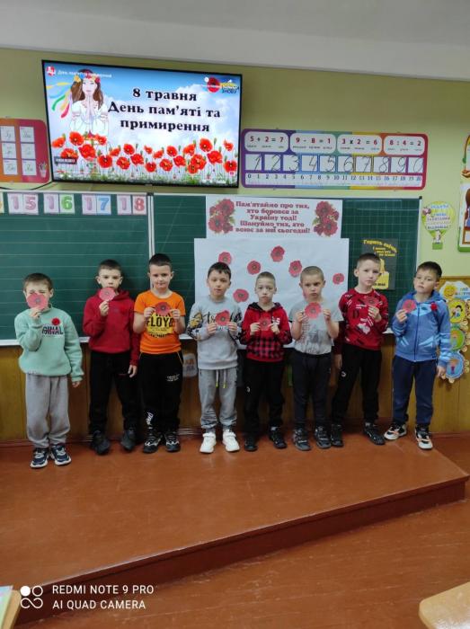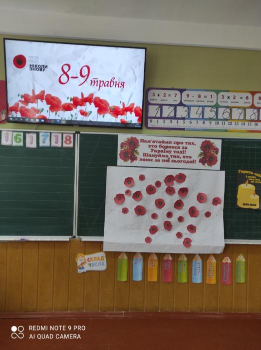 З учнями нашого закладу проведено ряд виховних бесід за темами: «Трагедія Українського народу в роки Другої світової війни», «Пам’ятаємо.Перемагаємо», «Обличчя війни». Проводились також різнопланові майстер-класи з виготовлення символу пам'яті про жертви Другої світової війни в світі - червоного маку, який кріпили на карту України.