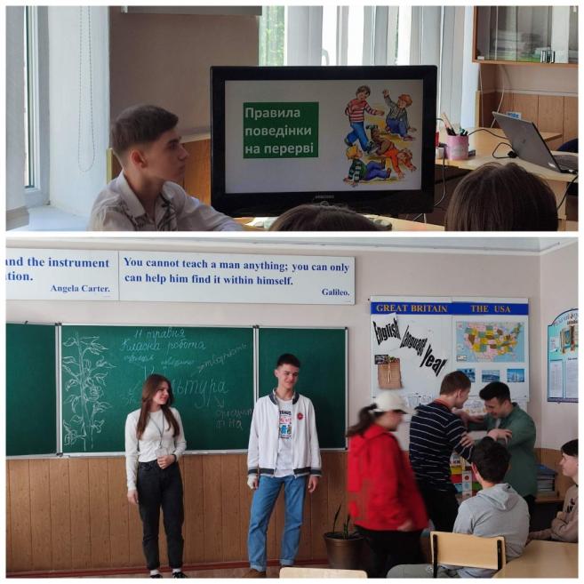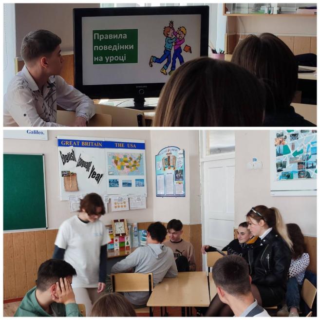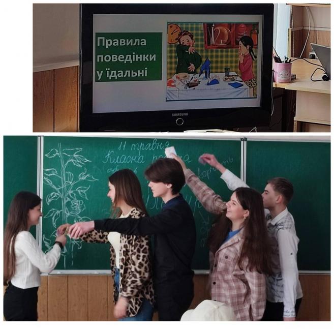 Девізом вчителька обрала слова "Поводься з іншими так, як хотів би, щоб інші поводилися з тобою". На занятті були такі інтерактивні вправи: "асоціативний кущ", вікторина, робота в групах, вправа "Підтримую чи ні". Учні підготували інсценування "Поведінка на уроці", "Поведінка на перерві" та "Поведінка у шкільній їдальні", де проаналізували відповідні правила, а також продемонстрували свої творчі акторські здібності.