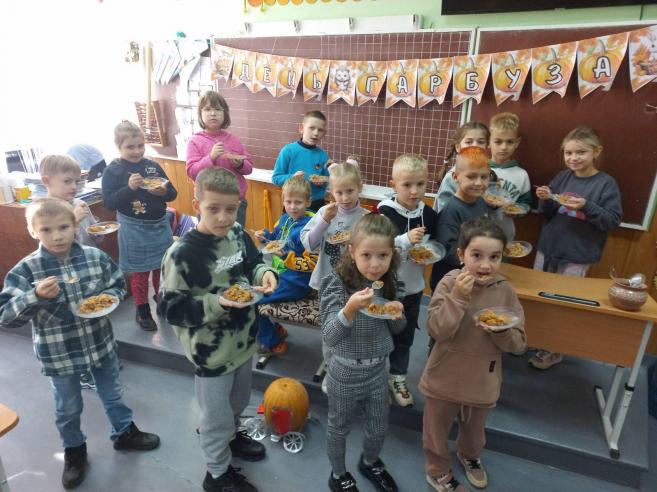 Сьогодні 2-і класи ОЗО Кіцманського ліцею готували солодку кашу з гарбуза, виготовляли фліпбуки. Кашу прикрашали родзинками, журавлиною, корицею, медком та смаженими горішками.