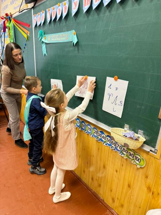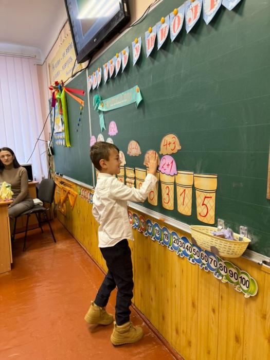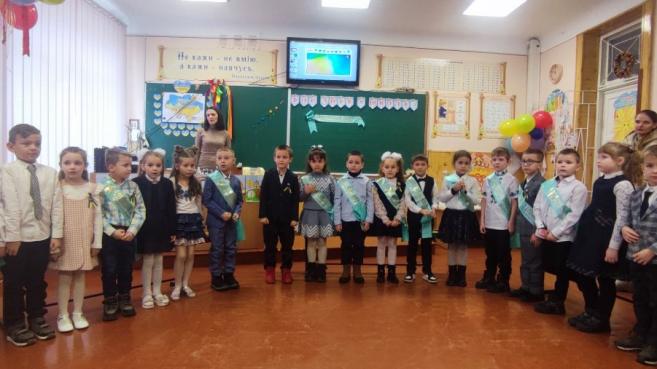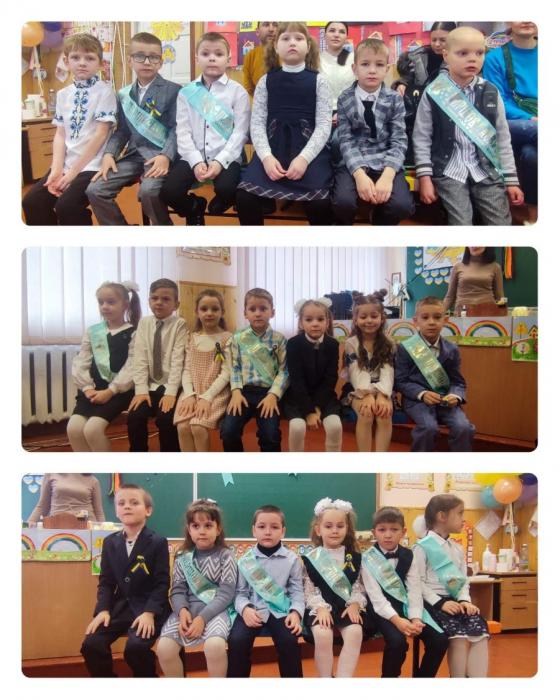 Діти, з класним керівником М. Г. Пукало, у вигляді гри - подорожі крокували по веселковій країні знань . Кожний колір веселки розкривав секрет предметів, які вони вивчають у 1 класі. Наприклад: червоний колір символізував уроки навчання грамоти ( читання ). І так кожен колір символізував відповідний предмет. Під час цієї подорожі учні працювали у групах та виконували різні завдання, демонстрували свої вміння, творчість, швидкість та знання про природу. Разом з батьками складали правила вихованих учнів. Під час свята, кожен етап супроводжувався 7 нагородами, які відповідали кількості кольорів веселки.