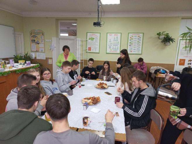 ☕Ó÷í³ ÎÇΠʳöìàíñüêèé ë³öåé â³äçíà÷èëè Äåíü ÷àþ ð³çíîá³÷íî. Îäí³, äîñë³äæóâàëè ³ñòîð³þ ÷àþ, ÷àéí³ òðàäèö³¿, äå ðîñòå ³ ÿê çáèðàþòü ÷àéí³ ëèñòî÷êè. ²íø³, â÷èëèñÿ ïðàâèëüíî ñåðâ³ðóâàòè ñò³ë, ïèòè íàï³é òà åòèêåòó ñï³ëêóâàííÿ ï³ä ÷àñ ÷àþâàííÿ. Äî öüîãî çàõîäó äîëó÷èëèñÿ ³ ó÷í³ ïî÷àòêîâî¿ øêîëè. ϳä ÷àñ çàõîäó âîíè ä³çíàëèñÿ áàãàòî ö³êàâèõ ôàêò³â ïðî öåé íàï³é, ðîçêàçóâàëè, ÿêèé ÷àé ëþáëÿòü ó ¿õí³õ ðîäèíàõ òà âèãîòîâëÿëè ïîðîáêè - ÷àøêè ç íîâîð³÷íî-ð³çäâÿíèìè ñèìâîë³êàìè.