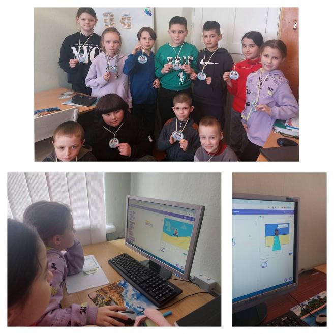 За допомогою сучасних інструментів штучного інтелекту й використовуючи SmartArt технології, учні 5-11 класів змогли розкрити креативний потенціал і створити візуальні проєкти «Майбутня Україна» та «Моїй Україні присвячується», а четвертокласники створили проєкт «Я люблю свою країну» у середовищі Scratch.
