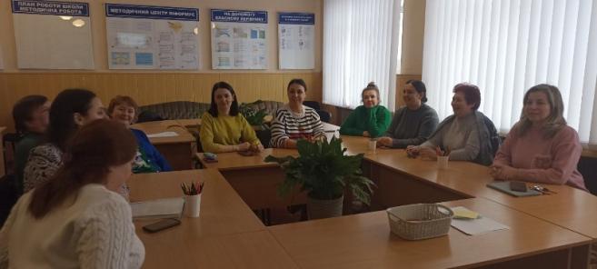 На засіданні "Школа молодого вчителя" педагоги прослухали виступ практичного психолога на тему: "Психологічні техніки для вчителів та учнів", спрямований на зняття емоційної напруги, тривоги та стресу.