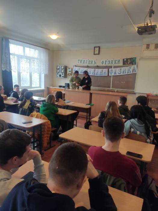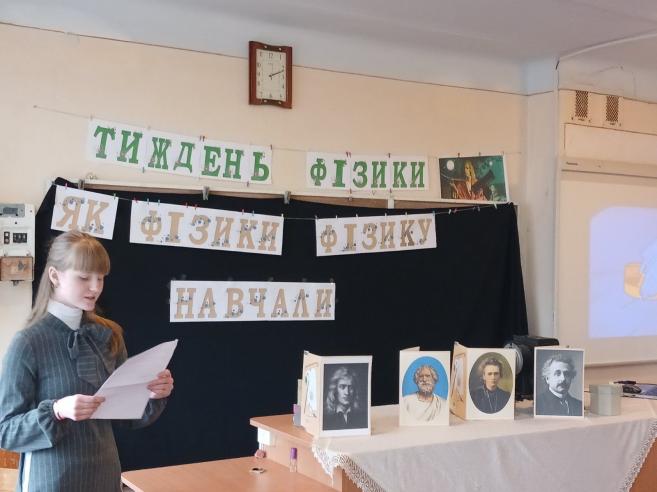 Цей тиждень в нашому навчальному закладі був присвячений фізиці ― одній з найдавніших наук, без якої неможливий подальший розвиток людства, цікавій, захоплюючій, могутній, дисципліні, що приносить людству велику користь. Метою тижня було активізувати пізнавальну діяльність учнів, поглибити їх знання з фізики та астрономії, розвивати логічне мислення, кмітливість, уміння діяти в нестандартних ситуаціях, виховувати цілеспрямованість. Вчителями Веретільником А.М. та Філіпчук В.В були успішно проведені дослідницькі квести «Сторінками фізики», інформаційні хвилинки «Це цікаво», інтелектуальні ігри «Цікава фізика», конкурси творів “Фізика в моєму житті ”, вікторини «Ключ до знань» та виставки, цікаві фізичні досліди, вчителі організували для учнів також кросворди та ребуси на перервах, щоб максисмально активізувати увагу,розвинути інтерес до фізичних явищ та величин. Учні, що брали активну участь у предметному тижні та всіх його заходах, отримали грамоти та нагороди. Такі форми та методи робіт, безумовно, виховують в учнів толерантне ставлення один до одного, вміння працювати в команді, вміння демонструвати багатство і красу світу точних наук!