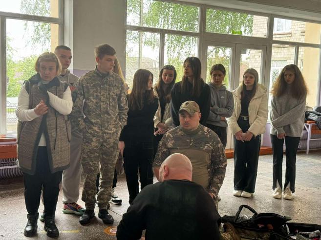 24 квітня учні 10-11 класів нашого закладу мали унікальну можливість взяти участь у майстер-класі з надання домедичної допомоги в умовах обстрілу, що відбувся в рамках місячника Цивільного захисту. Практичне заняття провів досвідчений бойовий медик 107 бригади, Дмитро Олександрович Намистюк.