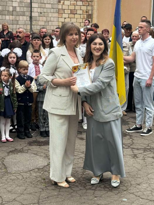 🔔Особливим моментом свята стало нагородження учнів, які досягли високих результатів у олімпіадах та конкурсах різного рівня. Тетяна Василівна особисто вручила почесні грамоти та нагороди переможцям, висловлюючи гордість за їхні здобутки і побажавши їм нових звершень. В. о. директора закладу Оксана Іванівна Марусяк подякувала педагогічному колективу за плідну працю протягом навчального року та нагородила вчителів грамотами.