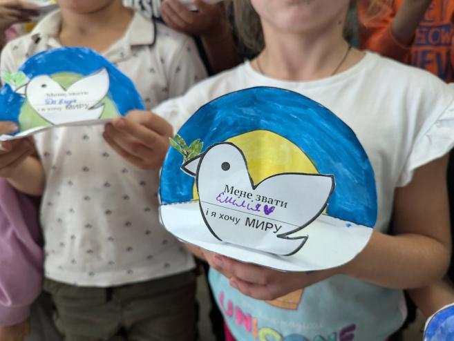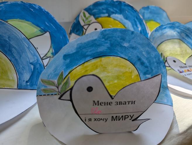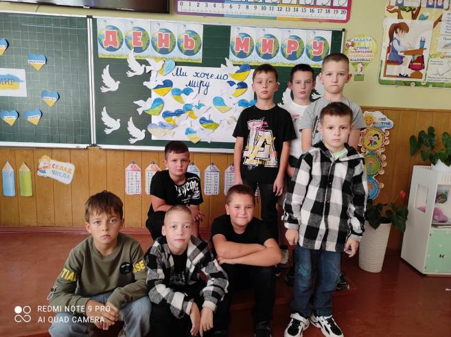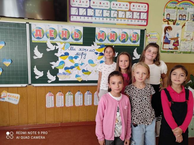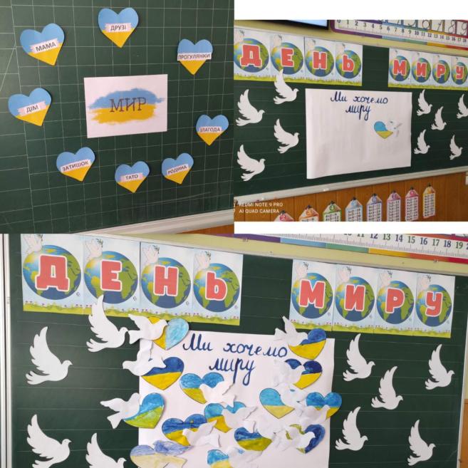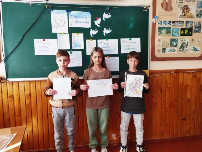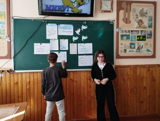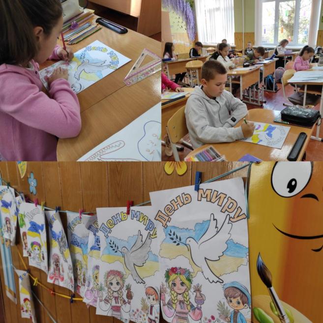 Також цікаво проведено творче завдання, під час якого учні малювали символ миру, писали побажання миру для всього світу.