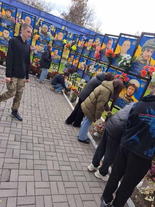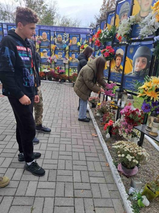 Особливо зворушливим був урок Мужності «Шлях до свободи не легкий» та вчинок учнів 10-В класу разом із класним керівником Наталею Василівною Щипанською, які вшанували пам’ять загиблих героїв, відвідавши Алею пам’яті загиблих воїнів у м. Кіцмань. Їхній жест нагадує нам, як важливо зберігати пам’ять про тих, хто поклав своє життя за свободу та незалежність України.