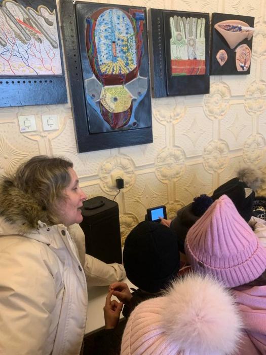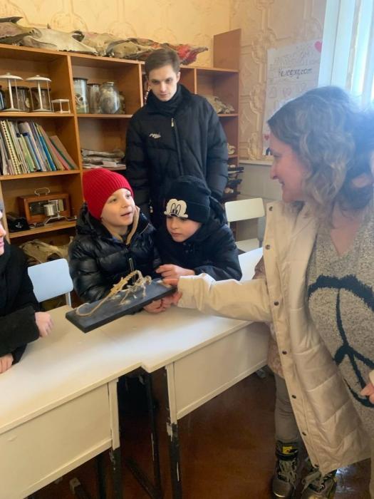Юні дослідники мали змогу не лише слухати, а й доторкнутися до справжніх кісток тварин і птахів, розглянути унікальний препарат мушлі двостулкового молюска, в якому формується перлина, а також ознайомитися з внутрішньою будовою організму тварин.