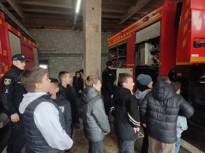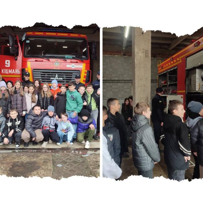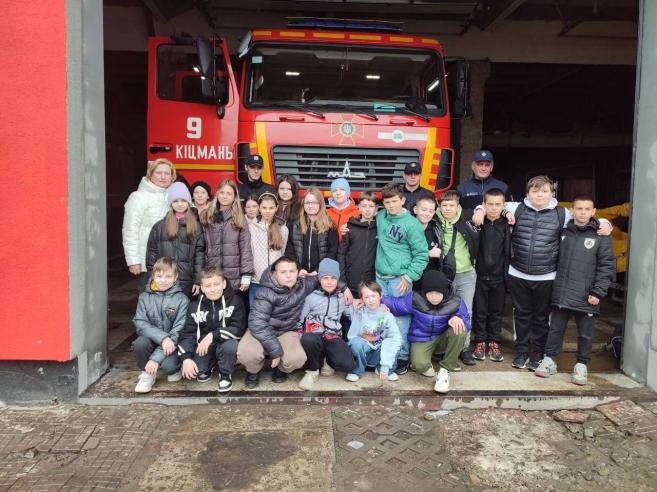 🔹 Інтерактивні заняття з учнями 1–11 класів про правила безпеки на залізничному транспорті, зокрема згідно з наказом Міністерства транспорту України. Учні 5-Б класу мали змогу побувати на екскурсії у підрозділі МНС м. Кіцмань.