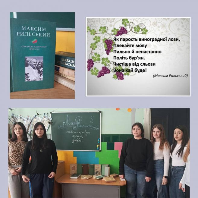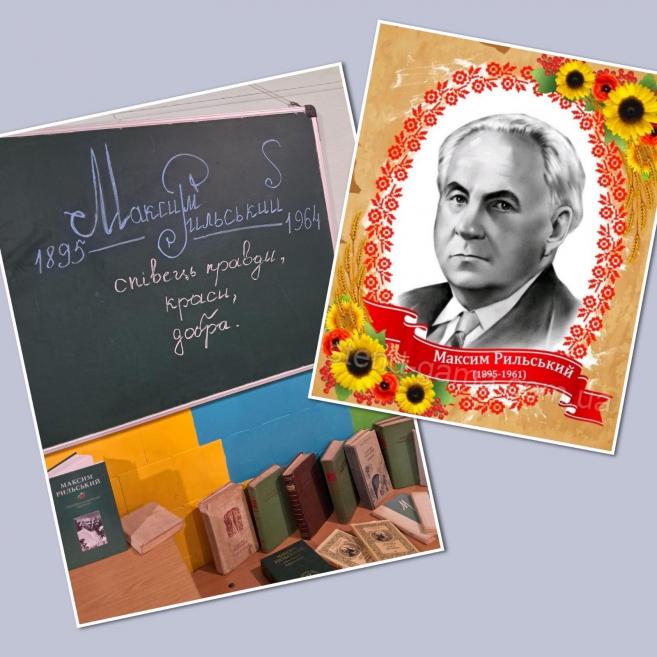 Протягом березня-квітня у нашому закладі відзначалася річниця з дня народження видатного українського поета, перекладача, мислителя Максима Рильського. У межах всеукраїнської освітньої кампанії «Максим Рильський. Перезавантаження: 130 років натхнення» наші учні разом із класними керівниками долучилися до вшанування постаті митця.