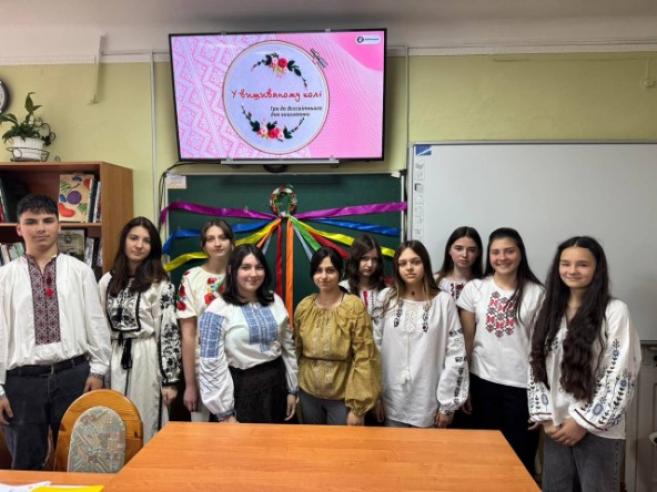 Сьогодні, у День вишиванки, класний керівник Ольга МАРУСЯК разом зі своїми вихованцями — учнями 8-А класу — провела змістовну годину спілкування «У вишиваному колі…»