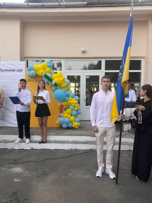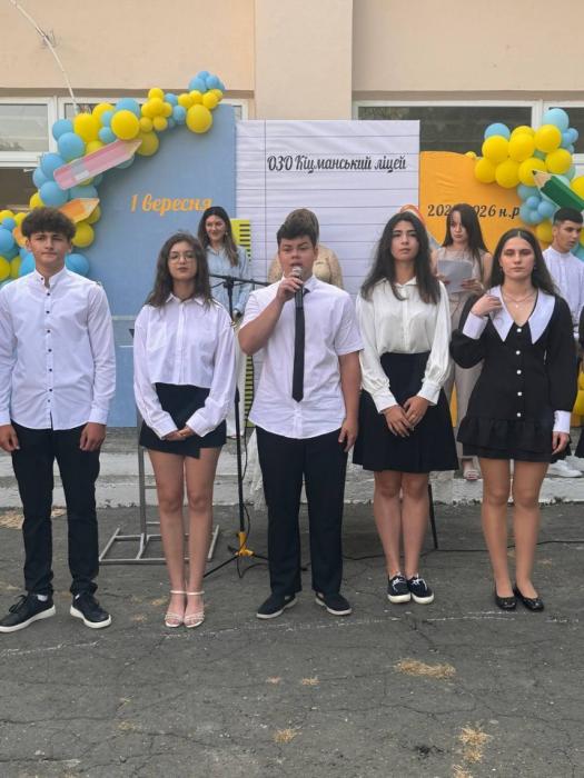 🔹 Урочистості розпочалися з хвилини мовчання на вшанування пам’яті загиблих воїнів, які віддали життя за Україну.🔹 Директорка закладу Оксана МАРУСЯК привітала всіх з початком нового навчального року та, за дорученням Чернівецької обласної ради, вручила почесну відзнаку «Незламні» вчителю захисту України Віталію Королюку.🔹 Наймолодші школярі – першокласники – вперше стали учасниками великої шкільної родини: вони читали вірші, співали пісні та дарували усмішки.🔹 У більшості класів пройшли перші уроки на патріотичну тематику «Україна – країна героїв», які надихнули дітей на нові звершення.🔹 Учні 10-х класів відвідали Алею пам’яті загиблих воїнів у м. Кіцмань, поклали квіти та вшанували пам’ять героїв.