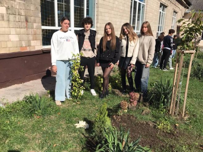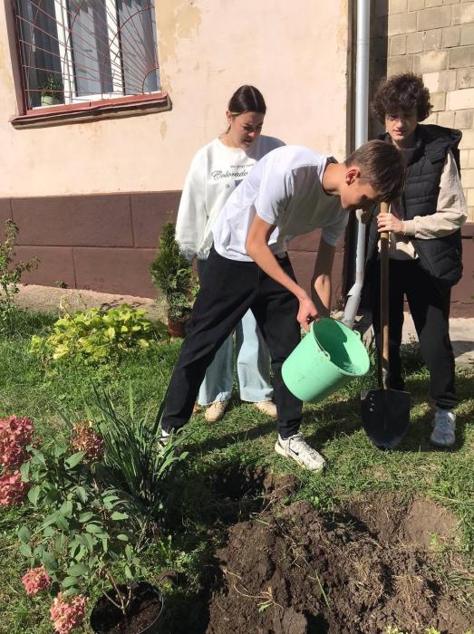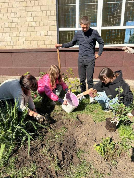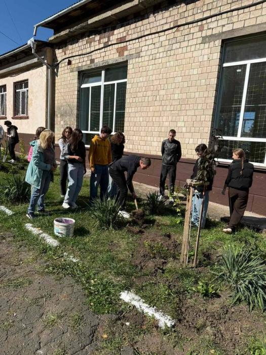 🌿🌸 Сьогодні наші 11-класники залишили по собі гарний і теплий слід у рідній школі – на згадку вони висадили туї та гортензії.