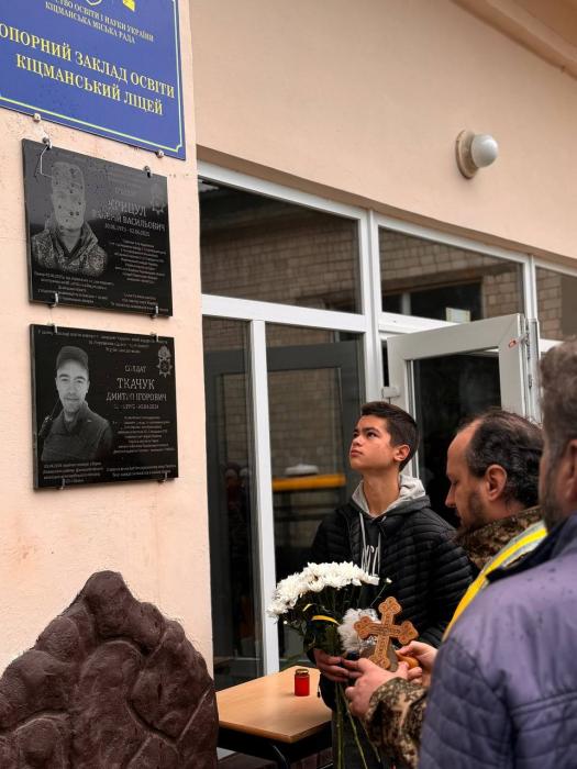 Сьогодні в ОЗО Кіцманський ліцей відбулася особлива й водночас скорботна подія — відкриття меморіальних дошок героям Національної гвардії України Дмитру Ігоровичу Ткачуку та Валерію Васильовичу Крицулу.