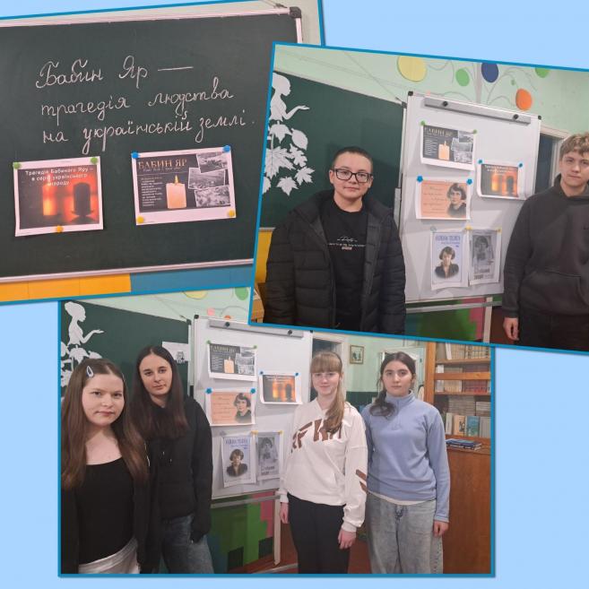 Сьогодні було проведено бібліотечний урок "Бабин яр - трагедія людства на українській землі" з учнями 9 - В класу.