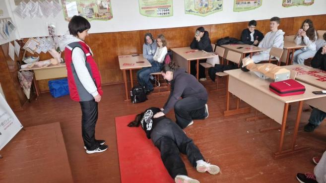 Îñîáëèâî âàæëèâîþ ÷àñòèíîþ ñòàâ áëîê ïðàêòè÷íèõ çàíÿòü ç íàäàííÿ ïåðøî¿ äîìåäè÷íî¿ äîïîìîãè çà ó÷àñòþ ïðàö³âíèê³â ×åðâîíîãî Õðåñòà , äå øêîëÿð³ â÷èëèñÿ ä³ÿòè âïåâíåíî é ïðàâèëüíî ó íàäçâè÷àéíèõ ñèòóàö³ÿõ.