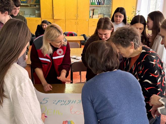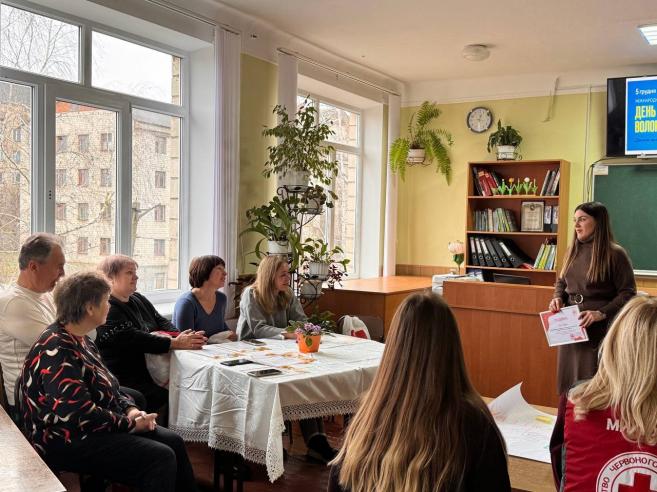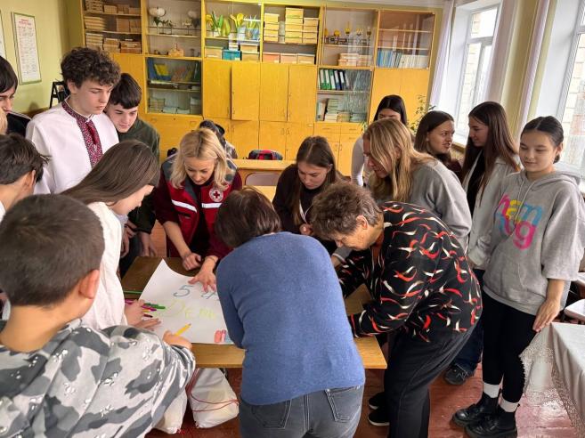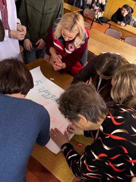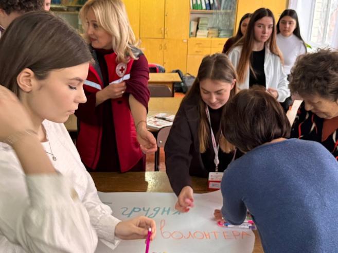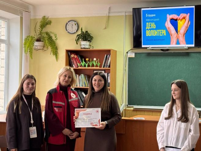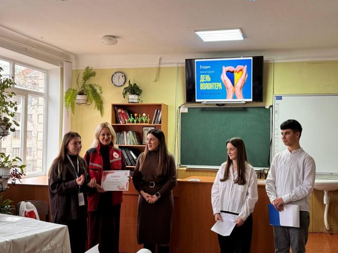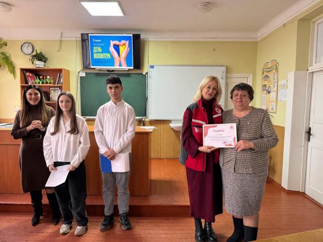 Також на захід завітали представники Товариства Червоного Хреста України, які поділилися своїми враженнями про волонтерську діяльність. У свою чергу вони відзначили подяками директорку Оксану МАРУСЯК та класного керівника Ольгу МАРУСЯК за активне сприяння в організації волонтерської роботи в громаді.