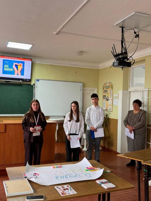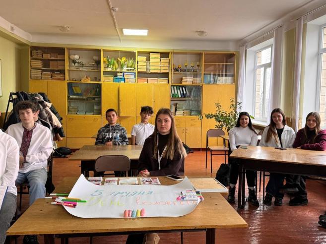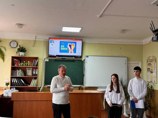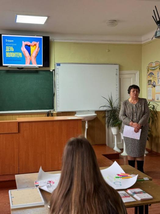 Учні 9-В класу з класним керівником Людмилою Токарчик провели пізнавальну годину спілкування «Добро в дії: уроки волонтерства», під час якої говорили про цінність взаємодопомоги та важливість небайдужості.