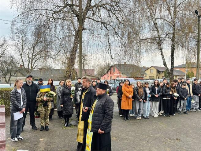 Сьогодні біля стін рідної школи відбулася надзвичайно важлива та зворушлива подія — урочисте відкриття меморіальної дошки випускнику закладу, мужньому воїну, захиснику України Юрію Васильовичу Скиданюку.